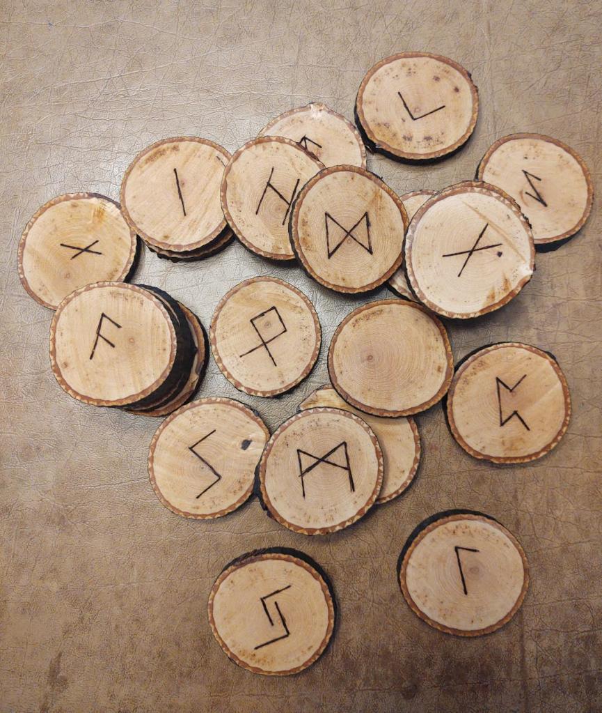 These are two sets of Runes I made from Hickory and from Cherry wood.